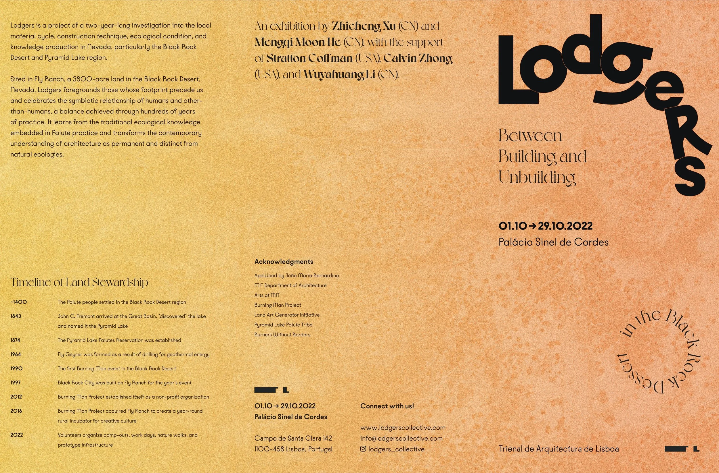 Sited in Fly Ranch, a 3800-acre land in the Black Rock Desert, Nevada, Lodgers foregrounds those whose footprint precede us and celebrates the symbiotic relationship of humans and other-than-humans, a balance achieved through hundreds of years of practice. It learns from the traditional ecological knowledge embedded in Paiute practice and transforms the contemporary understanding of architecture as permanent and distinct from natural ecologies.
